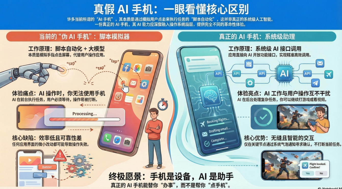 因为真正的 AI 手机,不应该是靠模拟用户点击来“假装”给你办事。