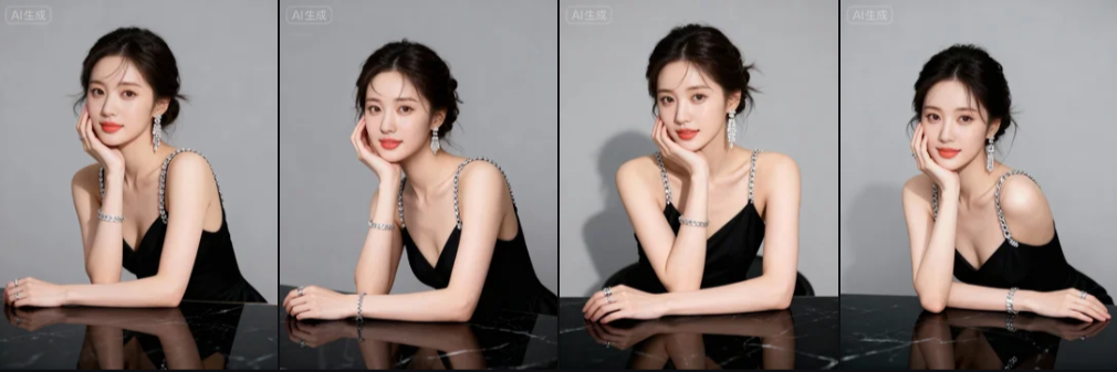 或者在下面提示词尾部加上:生成4张不同姿势。