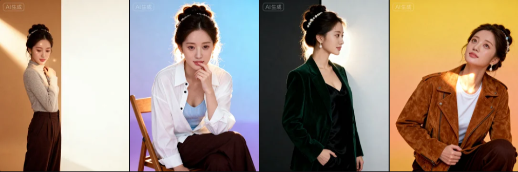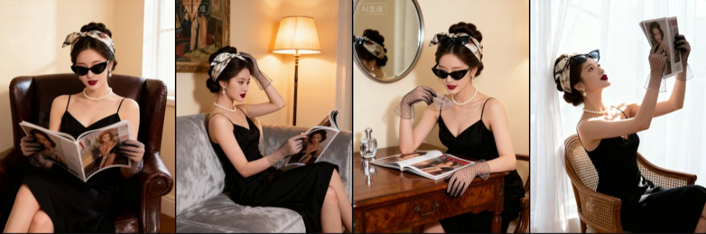 2. 若想批量出图,可把提示词最后一行改为 生成6张不同角度、姿势与表情的照片
